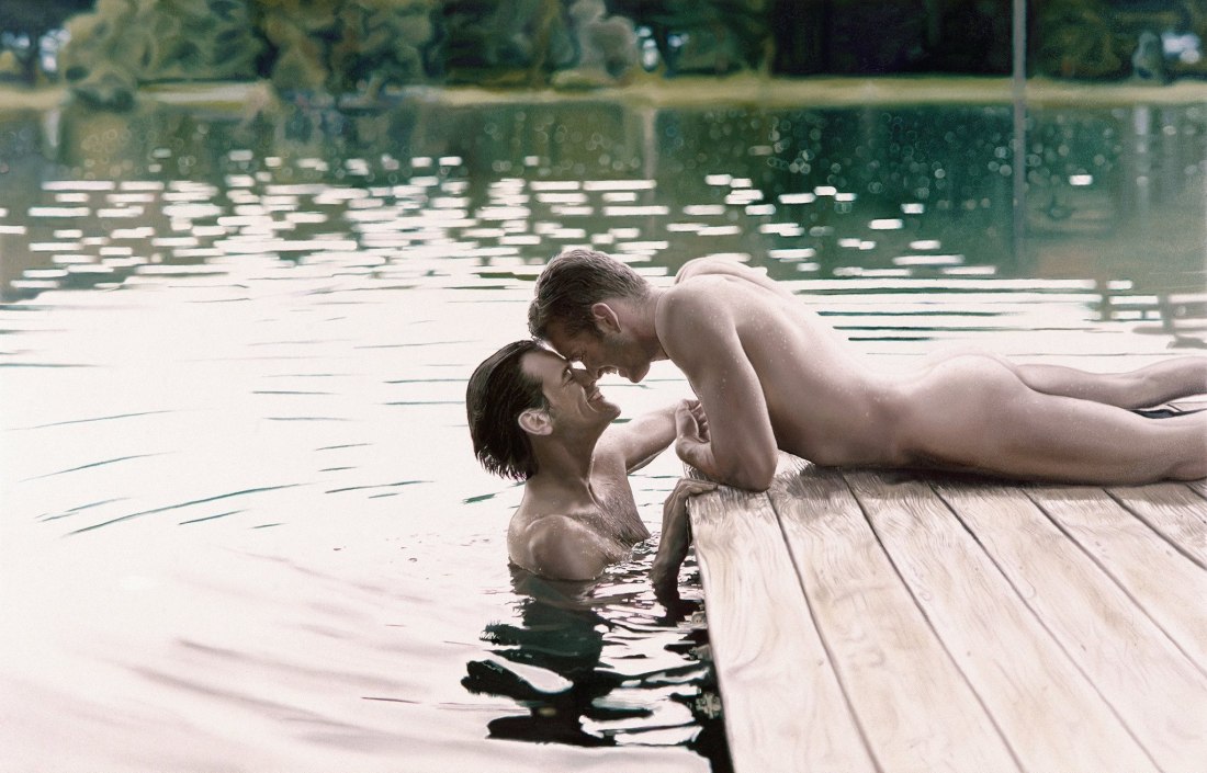 ![Мужчины голышом в воде]()