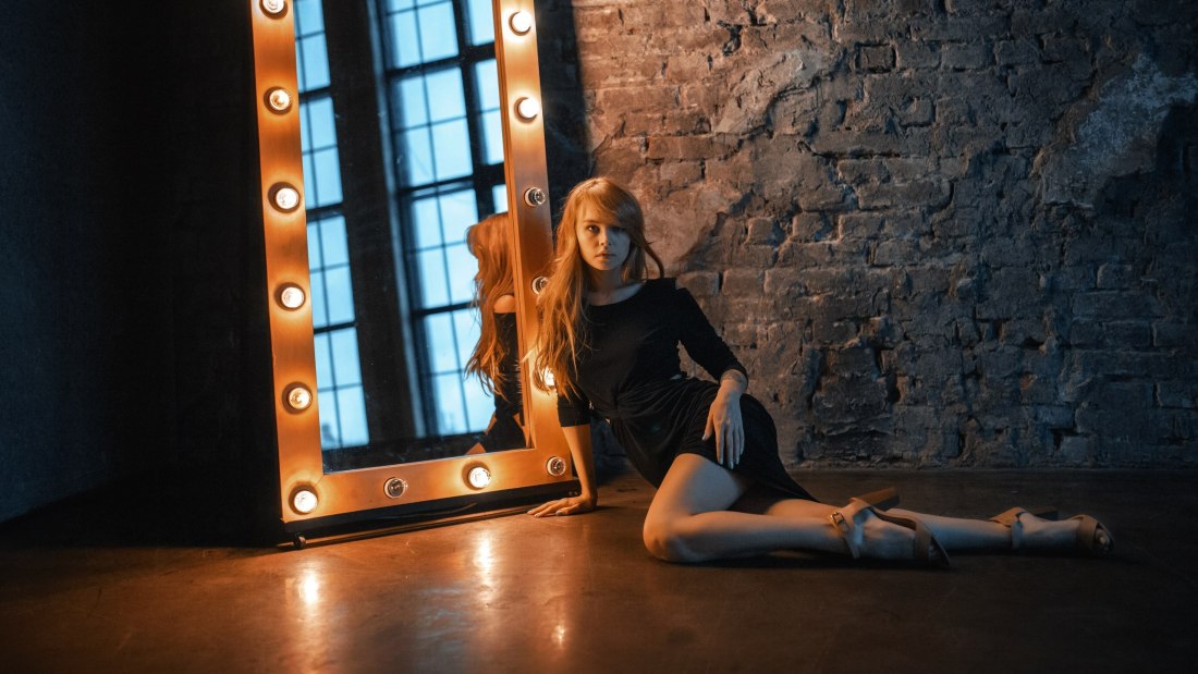 ![Женщина в кружевной маске лежит]()