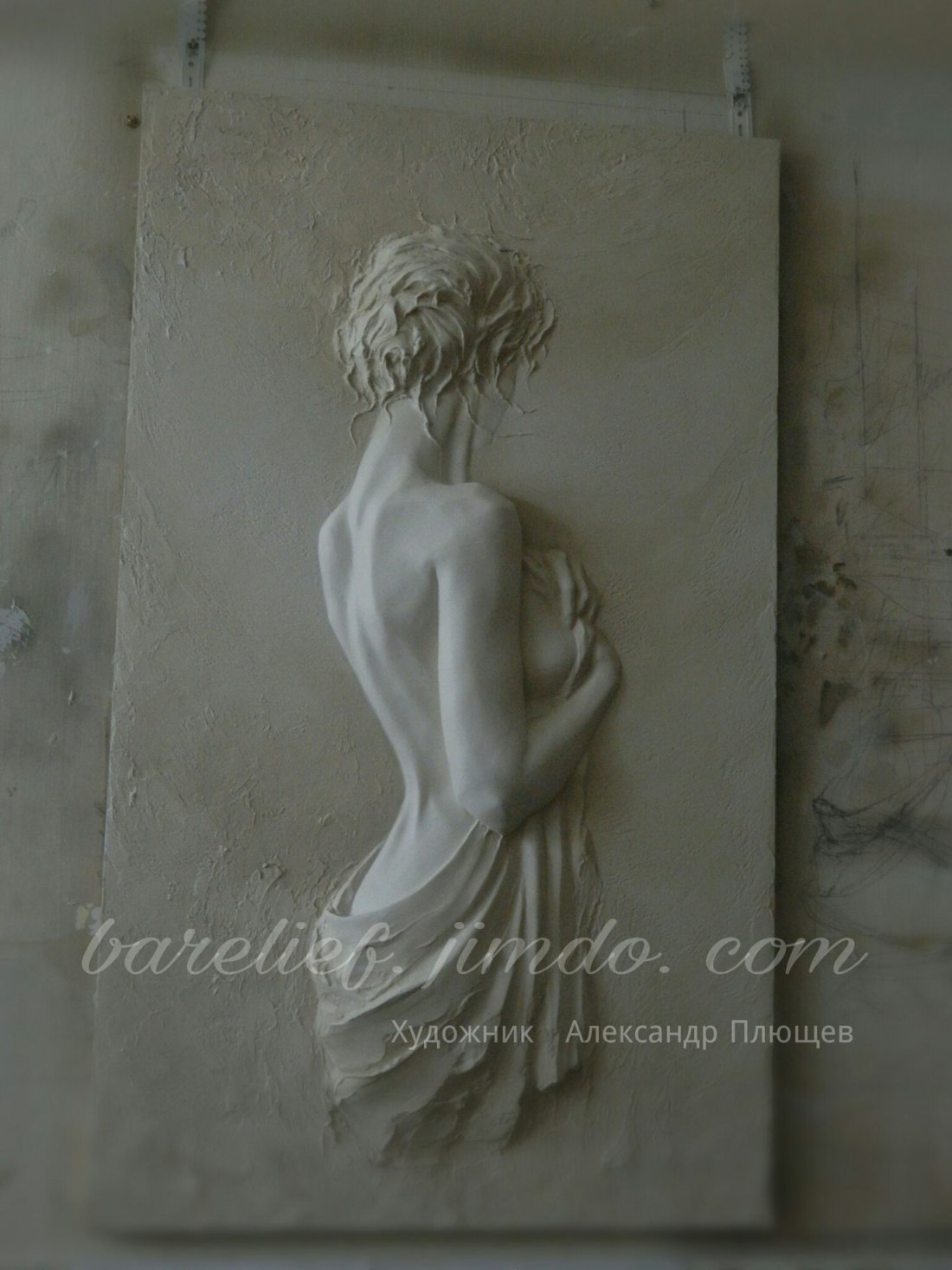 ![Барельеф девушка на стене]()