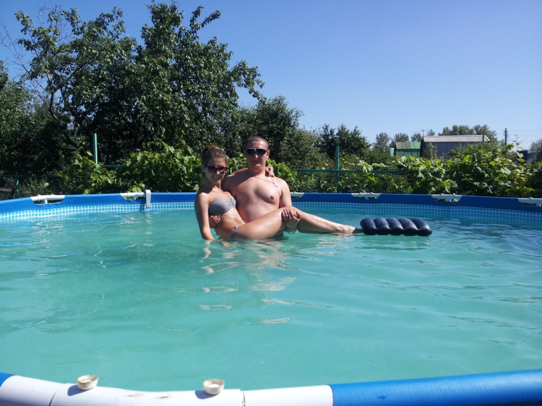 ![Жена в бассейне на даче]()