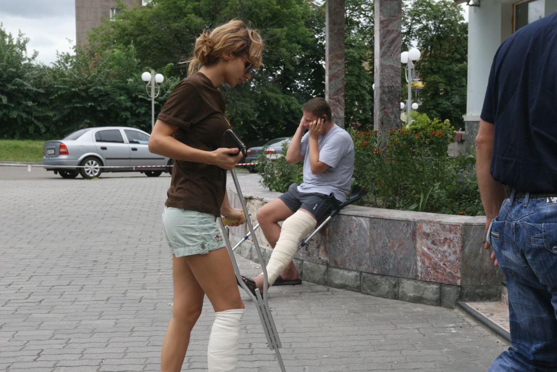 Девушка сломала ногу на костылях