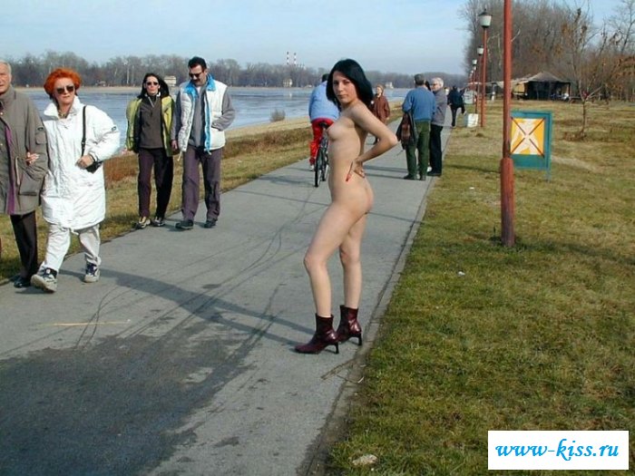 Слишком порочная и полностью обнаженная эксгибиционистка решила порадовать симпатичных мужчин и прогуляться по улице без нижнего белья, сверкая с гордостью натуральными маленькими сиськами и упругой попочкой. Стройная брюнетка способна и на большие порочные поступки, ради собственного кайфа и удовольствий. Безумная телочка решила до вечера соблазнять и обольщать неравнодушных кавалеров идеальной фигурой и безграничной распутностью на публике.